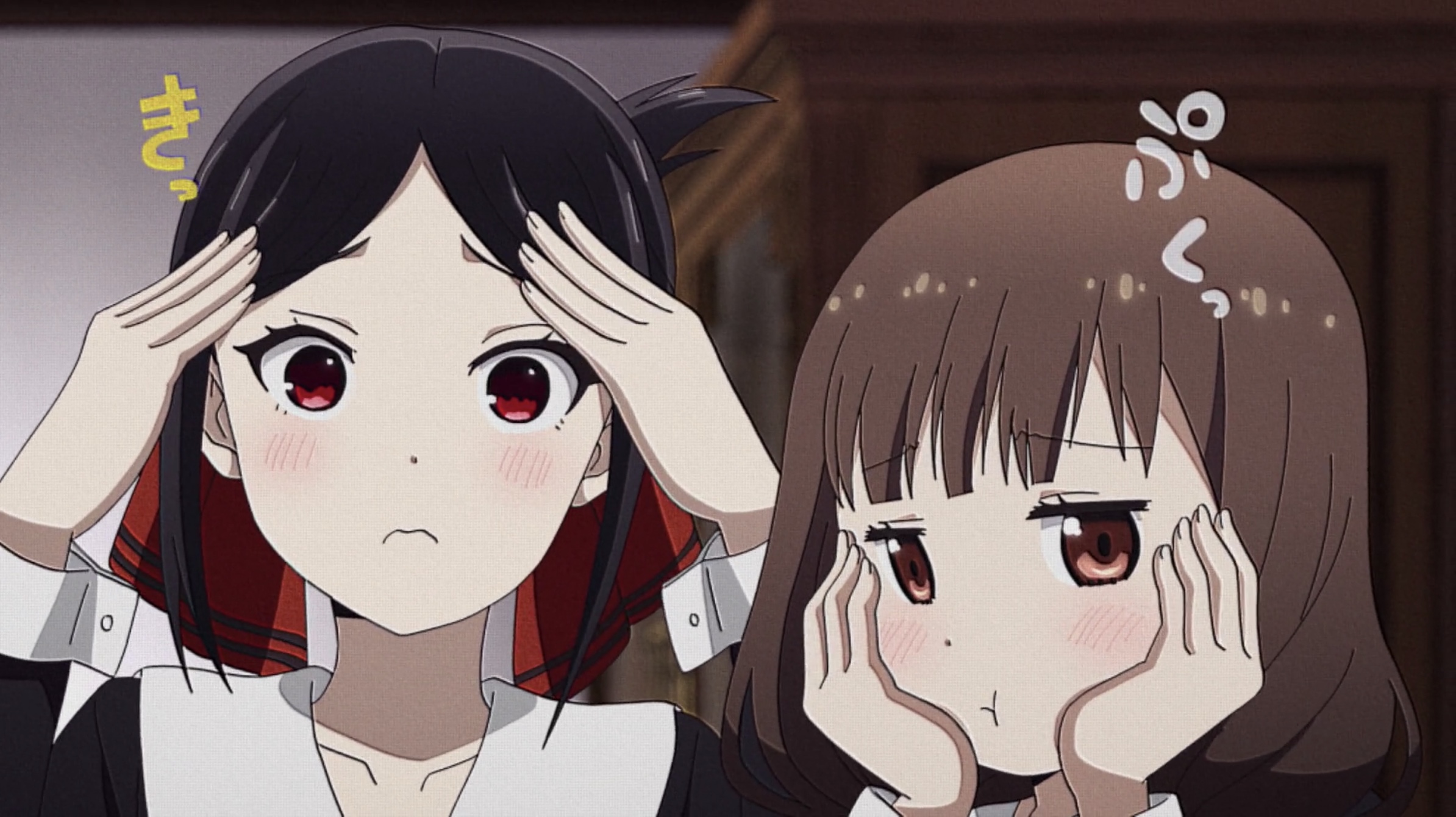 Il ne faut pourtant pas regarder que le duo principal pour saisir toute la splendeur de cette seconde saison. Leur entourage a également brillé, et de nouvelles têtes ont fait leur apparition avec Iino Miko, une chouette forte tête aussi stricte que chou. Chika a encore été fabuleuse dans son rôle, comprendre être elle-même, un ouragan infernal de bêtise imprévisible, capable du meilleur comme du pire mais qui sait apporter tellement d’inattendu. Elle fut encore excellente dans son rôle de professeur qu’elle a repris à deux reprises et autant dire que ce sont toujours de grands moments. On a vu davantage Hayasaka, souvent à son grand désarroi, pour là encore des moments très funs et parfois plus mignons. Il me tarde d’en voir davantage de ce personnage qui reste encore très énigmatique à mes yeux. Enfin, comment ne pas évoquer Ishigami qui s’est payé le luxe d’un arc final fort touchant. Je regrette juste que certaines personnes semblent avoir mal interprété la moralité de son histoire, qui dégage néanmoins beaucoup de positif et dévoile une grande bonté d’âme du garçon. Et c’est une bonne manière de rappeler que si Kaguya-sama est une comédie hilarante, elle raconte aussi des histoires chargées d’émotions fortes, de sentiments chaleureux et tristes, qui font évoluer ses personnages. C’est le genre de séries où l’on rigole et pleure avec ses personnages, on les voit grandir, essayer, échouer et se relever. Couplé à cela une réalisation toujours plus incroyable, où la force de la mise en scène va clairement sublimer de nombreux moments. Et je ne peux que jubiler maintenant de savoir qu’une troisième saison, des oavs et surtout le manga en France nous attendant pour les mois et années à venir.